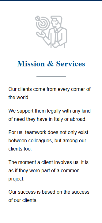 We offer a wide range of services – car accidents, divorce, buying and selling, suspected fraud, serious disservice, acquisition of Italian citizenship, and so on – and our team has the competence and the charisma to tackle any situation.